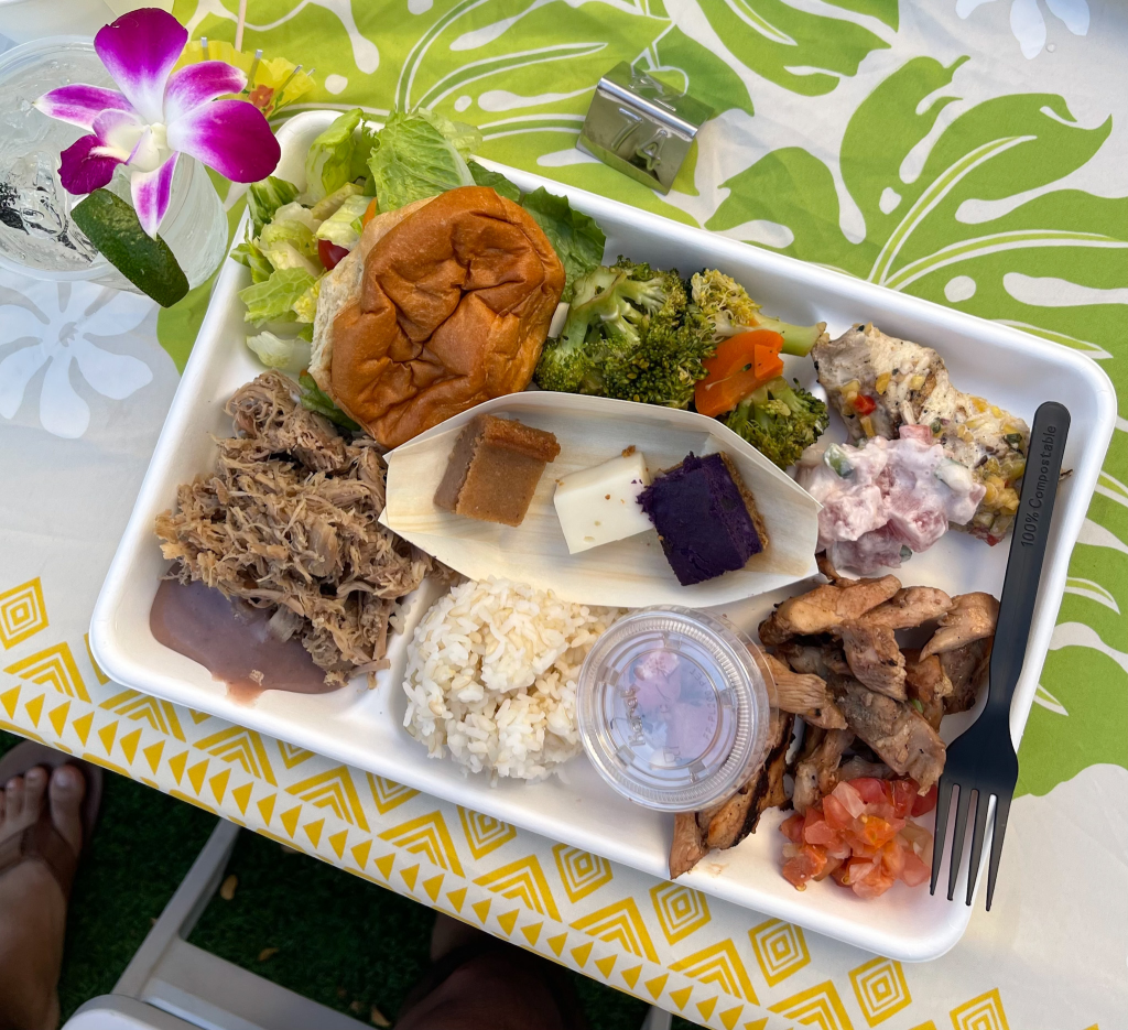 A luau is a Hawaiian party that features a delicious meal along with an elaborate show, all taking place outdoors and a tradition that goes back more than 150 years. The food can be plated or buffet style, depending on which one you go to, but either way you can expect a mouthwatering feast of pork, salmon, taro, noodles, poke, Hawaiian rolls, and much more.
