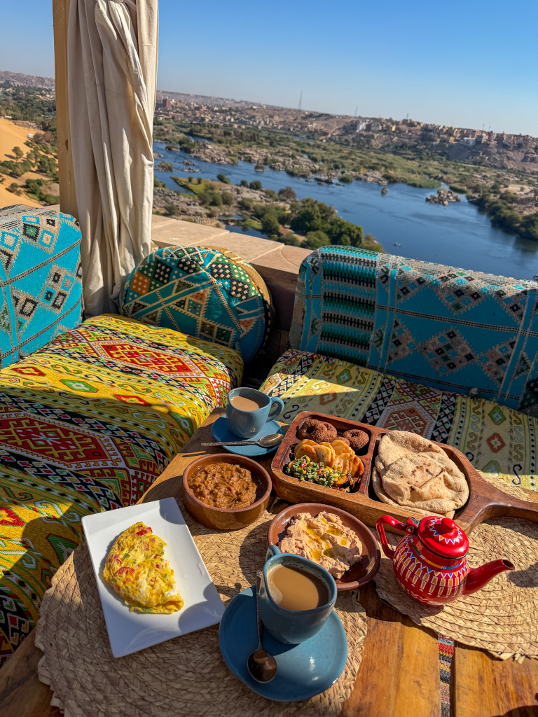 We stayed at the serene Kato Dool Wellness Retreat on the edge of town, where our surroundings were as peaceful as they were beautiful. This was a great base for us to unwind and relax while still being close enough to explore Aswan and the nearby Nubian Village.
