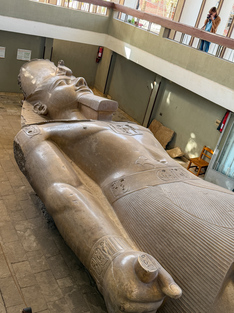 Once the capital city, Memphis is home to the colossal statue of Ramses II, which is over 30 feet in length. Today it is presented lying flat on its back due to damage at its base, and the statue is housed in an enclosure that allows you to view it all the way around, as well as from above on the second floor.