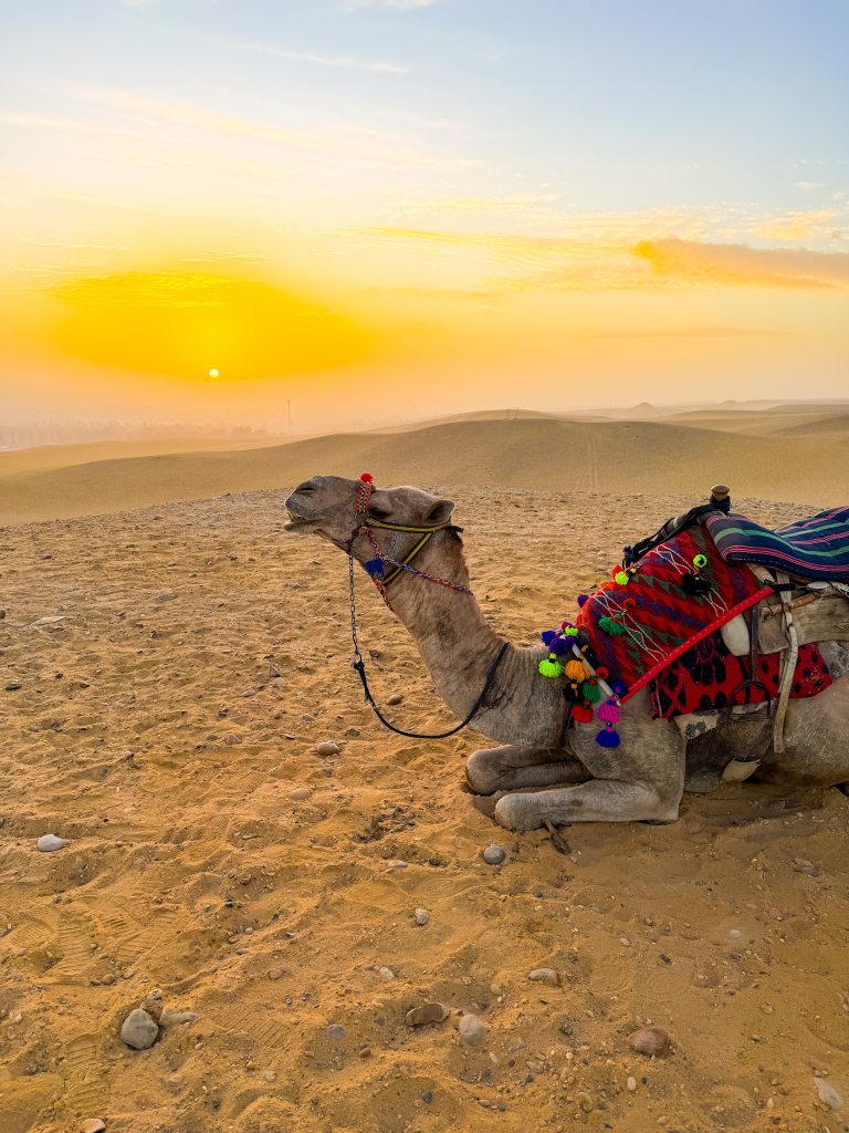 When planning our Cairo itinerary, of course the iconic Giza Pyramid’s was the very first thing on our list. Our day 1 tour will began with getting a first glimpse of these legendary structures at the crack of dawn while taking a sunrise camel ride through the desert.