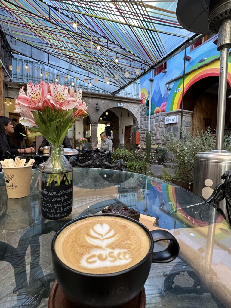 Cusco has so many great coffee spots, but Three Monkey’s Coffee is one of the best! Not only is the coffee delicious, but there is a colorful courtyard where you can enjoy the coffee. It also has great internet service if you need to get any work done and extremely friendly, accommodating staff.