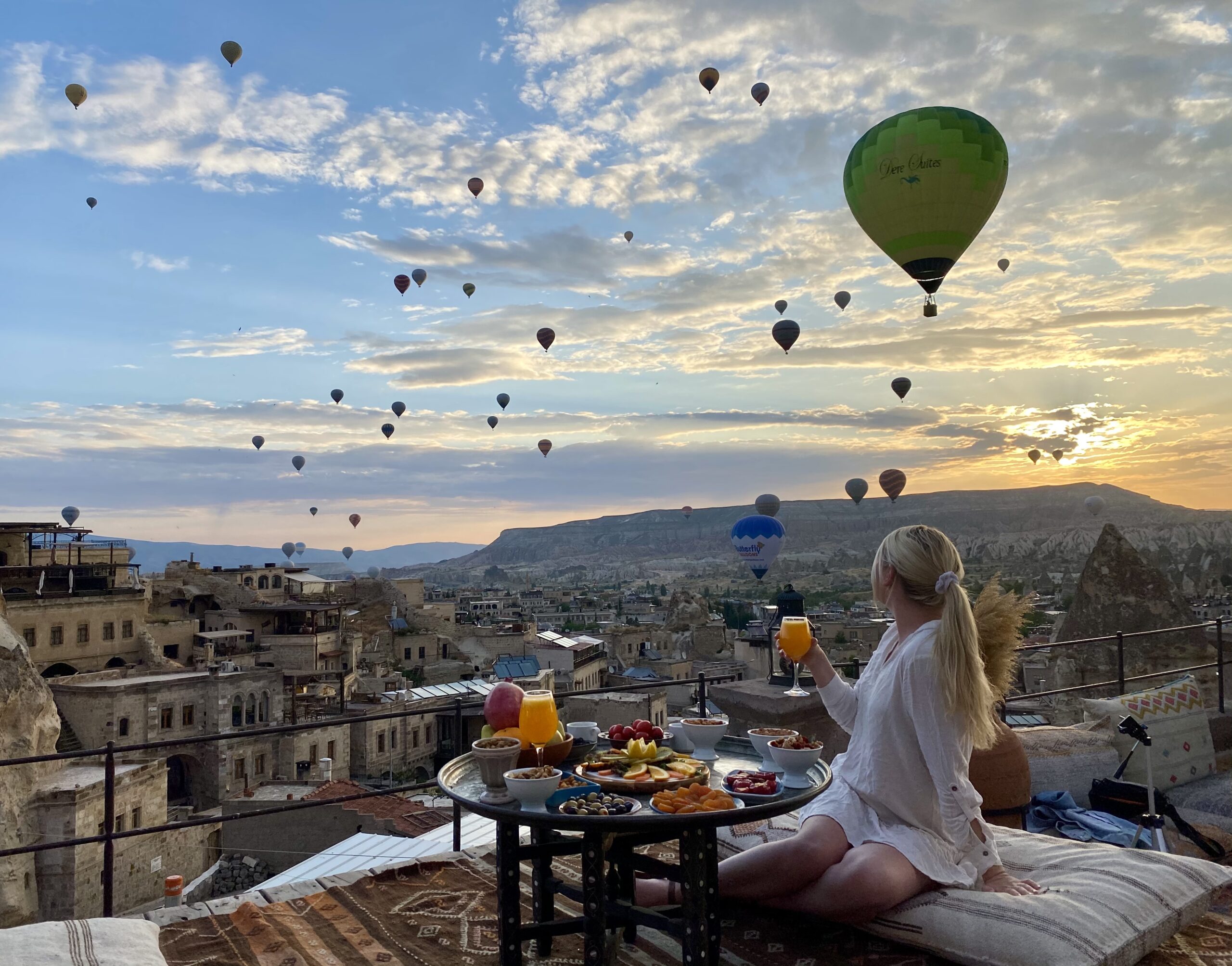 There were so many things about this hotel stand out, but especially the terrace view at sunrise. This hotel is known to have one of the best terraces to watch the hot air balloons at sunrise and it completely exceeded my expectations. Watching hot air ballons soar direclty above and over the beautiful landscape of Cappadocia at sunrise is some thing I will never forget.